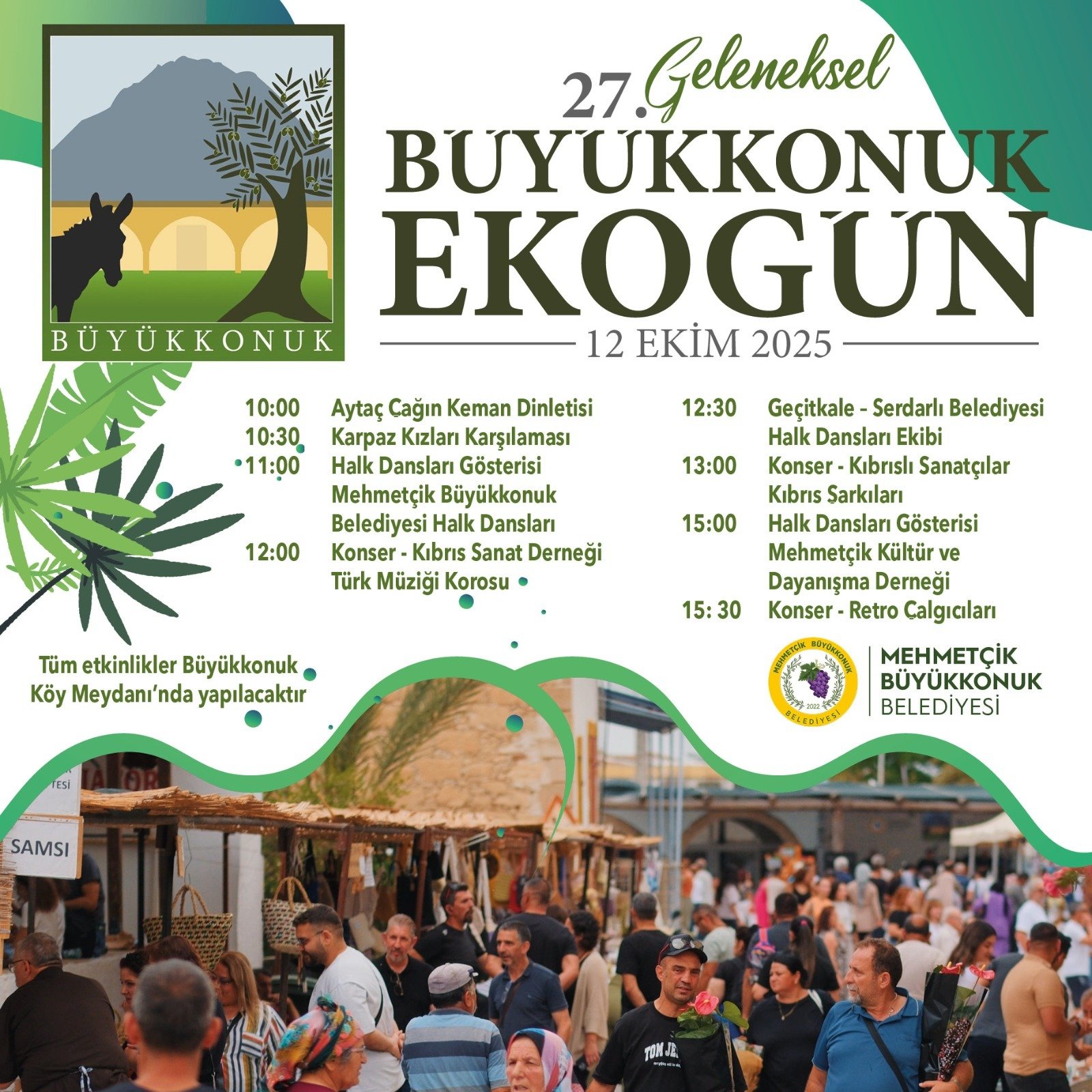 Mehmetçik Büyükkonuk Belediyesi tarafından düzenlenen 27. Geleneksel Eko Gün, pazar günü Büyükkonuk Köy Meydanı’nda gerçekleştirilecek.