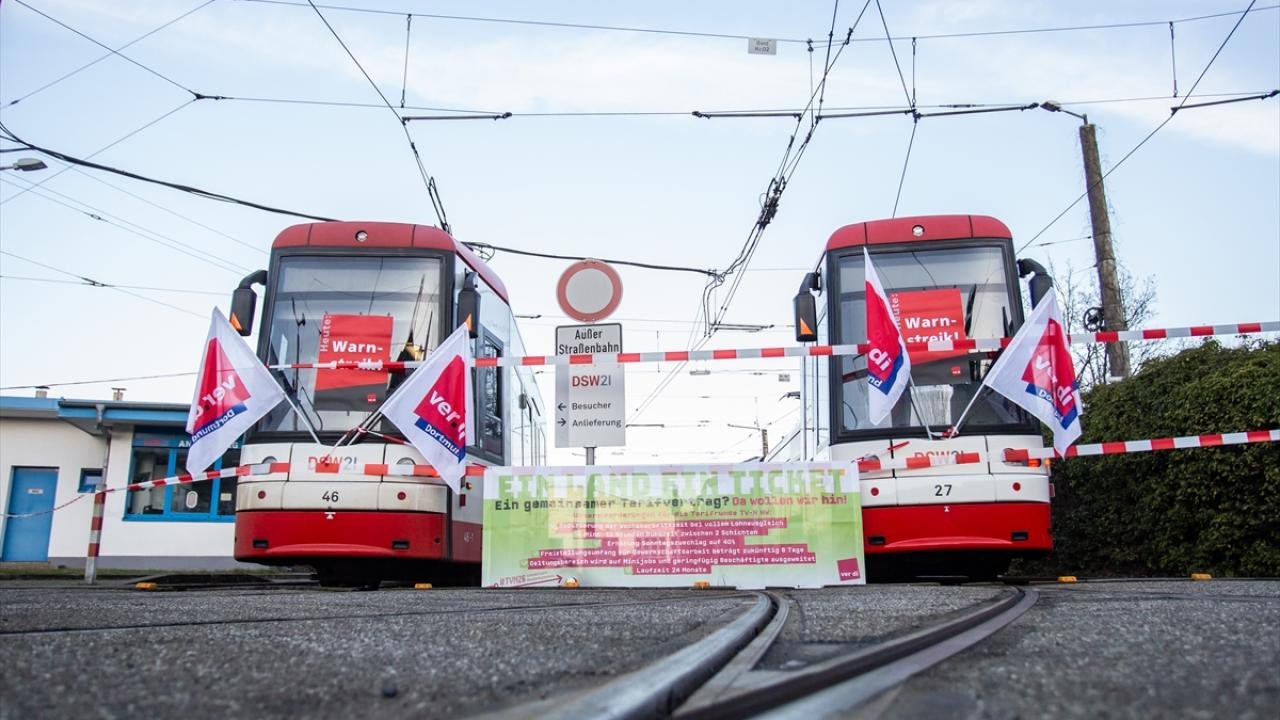 Almanya’nın en büyük sendikalarından Birleşmiş Hizmet Sektörü Sendikasının (Ver.di) çağrısıyla, işverenleri daha iyi çalışma koşullarına zorlamak amacıyla yaklaşık 150 belediye ulaşım şirketinin çalışanları saat 03.00’ten itibaren 24 saatlik grev başlattı.