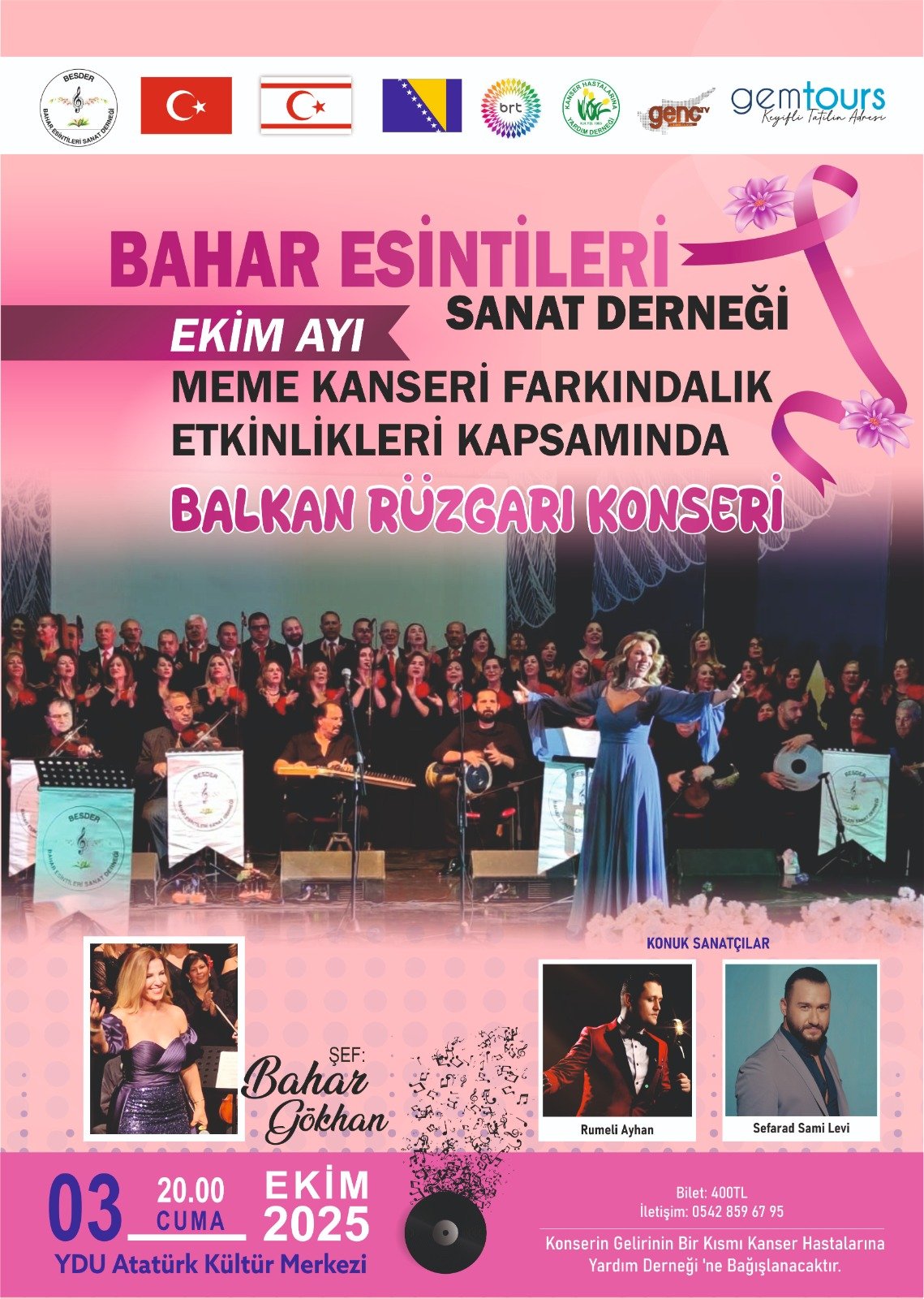 “Meme Kanseri Farkındalık Ayı” etkinlikleri kapsamında düzenlenecek konserin gelirinin bir kısmı Kanser Hastalarına Yardım Derneği’ne bağışlanacak.