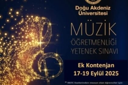 Doğu Akdeniz Üniversitesi (DAÜ) Eğitim Fakültesi, Güzel Sanatlar Eğitimi Bölümü tarafından Müzik Öğretmenliği Lisans Programı için ek kontenjan yetenek sınavı yapılacak. DAÜ’den yapılan...