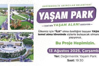 Değirmenlik Akıncılar Belediyesi’nin öz kaynaklarıyla hayata geçirilecek olan “Yaşam Park Projesi”nin temel atma töreni, 13 Ağustos Çarşamba günü yapılacak. Belediye’den yapılan açıklamaya göre, tören...