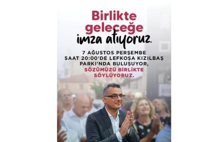 “Birlikte Geleceğe İmza Atıyoruz” sloganıyla bu akşam Kızılbaş Parkı’nda etkinlik düzenlenecek. Cumhuriyetçi Türk Partisi (CTP) Genel Başkanı ve Cumhurbaşkanı adayı olduğunu açıklayan Tufan Erhürman, ...