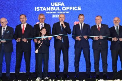 UEFA’nın İstanbul’daki temsilciliği, Cumhurbaşkanı Recep Tayyip Erdoğan’ın katılımıyla açıldı. UEFA’nın Londra ve Brüksel’in ardından 3. dış merkezi İstanbul’da ola...