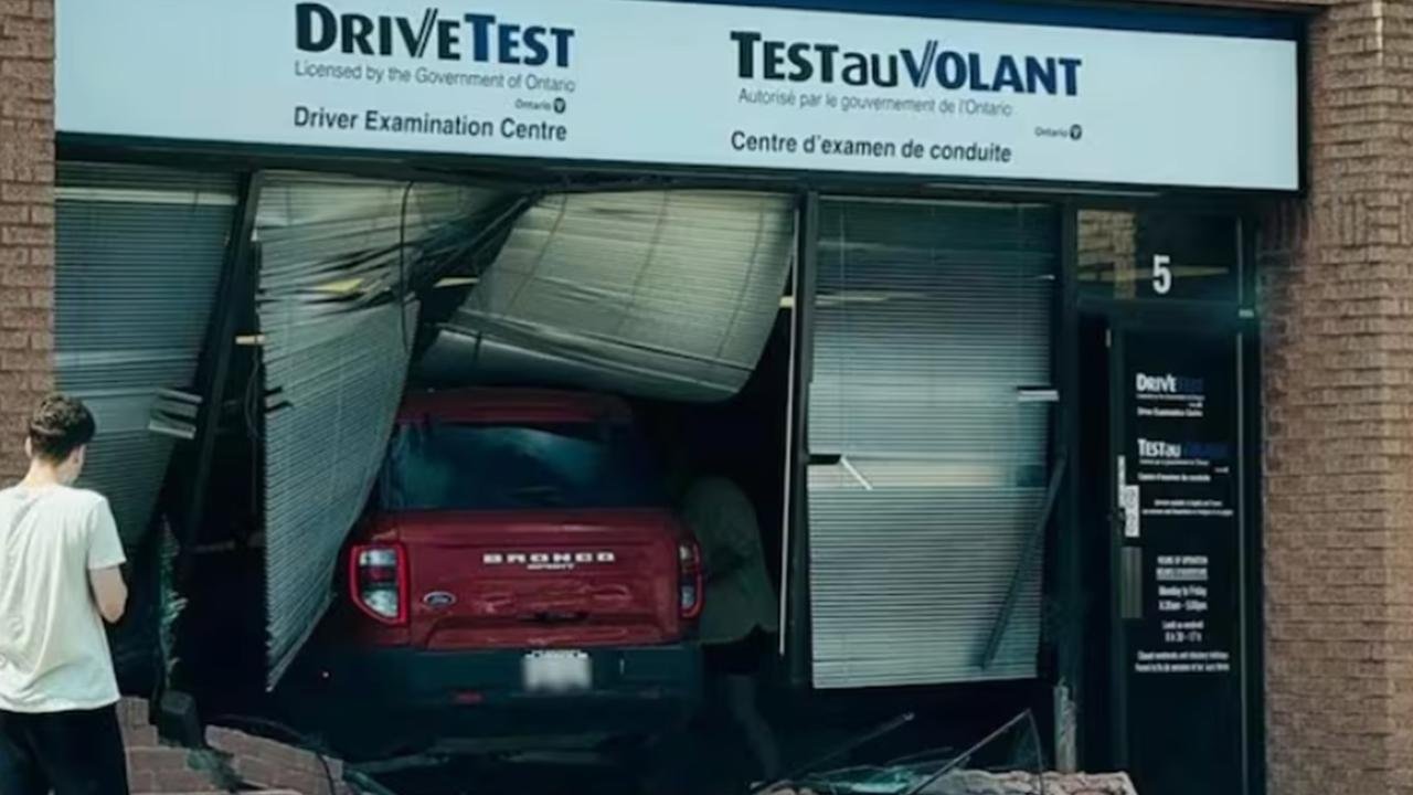 Tanık Sean Robbins, önce herkesin güvenliğini düşündüğünü, ardından kazanın bir sürücü sınav merkezinde yaşandığını fark edince olayın ironisini kavradığını söyledi.