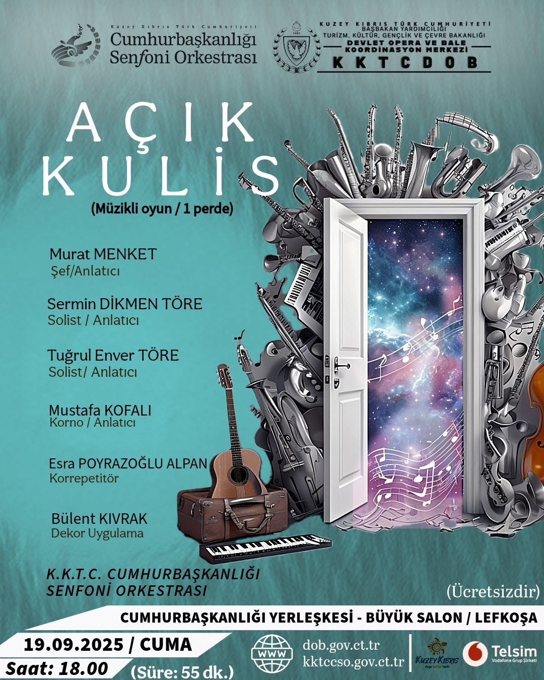 KKTCDOB’tan verilen bilgiye göre, Devlet Opera ve Bale Koordinasyon Merkezi (KKTCDOB) ile Cumhurbaşkanlığı Senfoni Orkestrası’nın (KKTCCSO) ortak yapımı olan oyun saat 18.00’de Cumhurbaşkanlığı Yerleşkesi Büyük Konferans Salonu’nda sahnelenecek.