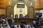 Canlı yayında verilen etkinlikte, yemek servisinin başlamasından kısa süre sonra sesler yükselirken, Trump’ın koruma ekipleri uzun namlulu silahlarla salonda görülmüştü.